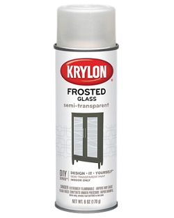 After the design is attached on the inside, take the door outside and put it across a couple of sawhorses. Make sure to tape off the freshly painted wood and then evenly apply the Krylon Frosted Glass spray on the inside glass. I used 2 coats and then as an extra precaution, I sprayed a couple of coats of clear to make it more durable.