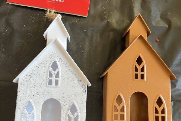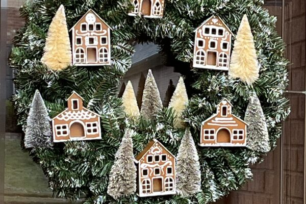 Gingerbread Wreath Using Dollar Tree Houses and Bottlebrush Trees This post may contain affiliate links from which I will receive...