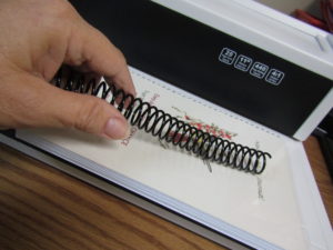 At this point, stack everything up, making sure the pages are set up correctly. In the past I took it to Office Depot to bind it with the coil. Of course, that is still a good option, if you don’t have the equipment to do it yourself. Recently, I purchased the equipment to do it myself.
