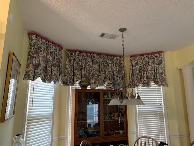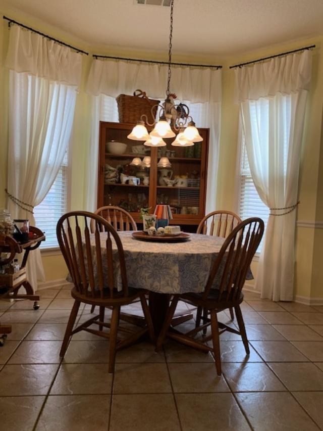 Our kitchen nook. the window treatments are lovely but not out style and we cant open the blinds