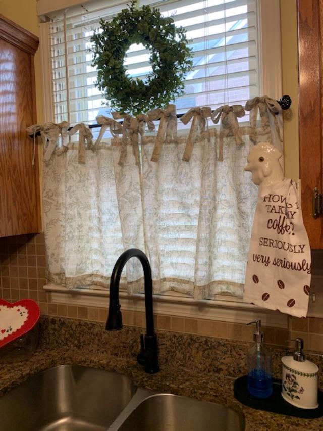 The next issue I had to handle was the neighbors being so close on each side. I handled that with some creative window treatments. I love the sunlight that comes into this house and I didn’t want to block that. Also, I didn’t want to see into their windows when I was doing dishes or eating in the breakfast nook and I absolutely didn’t want them seeing me in my pjs.