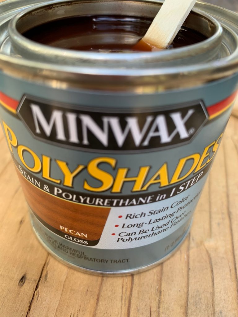 Obviously the base has faded over the years and could use some TLC. I cleaned, cleaned and cleaned to get ready for a fresh coat of Minwax PolyShades in pecan.