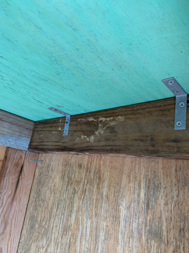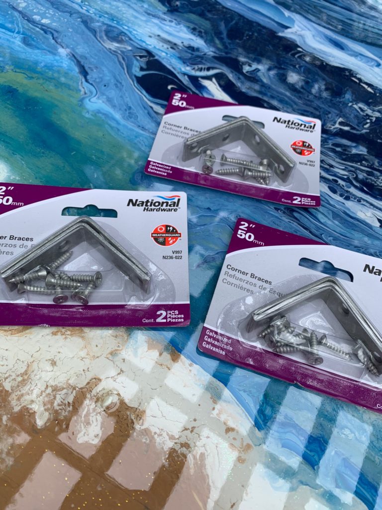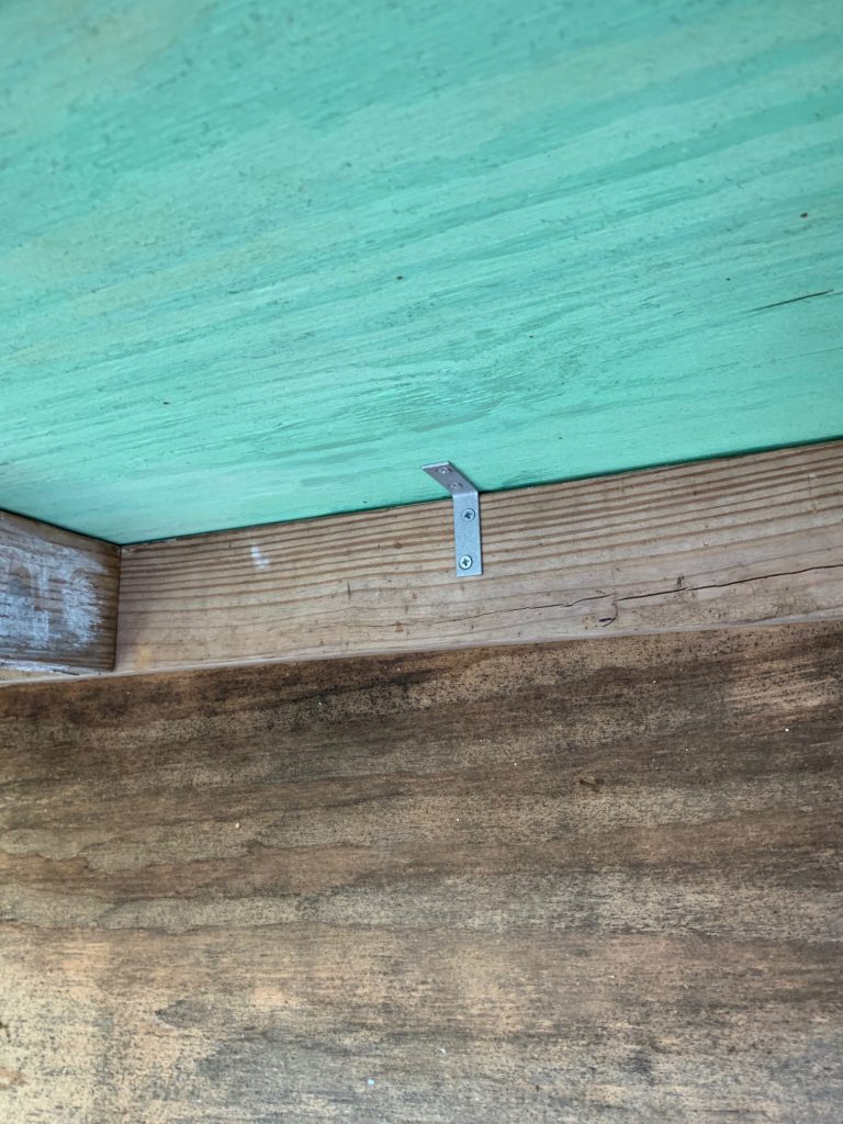 Lowe’s has these corner braces and that is what we decided would be the cleanest way to install the top. There was no way I was going to put a screw in the top!